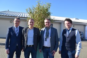 Thomas Luh, Geschäftsführer der M.A.T. Objekt GmbH (l.), und Pascale Watermann, Organisationsleiter M.A.T. (r.), umrahmen Christiaan Tielemann und Wolfgang Giesen von der GBT Event GmbH und freuen sich auf die fünfjährige Zusammenarbeit. Foto: Zielinski